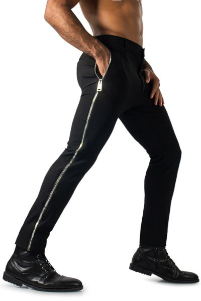 Slim Fit Black Pants with Edgy Side Zipper Design