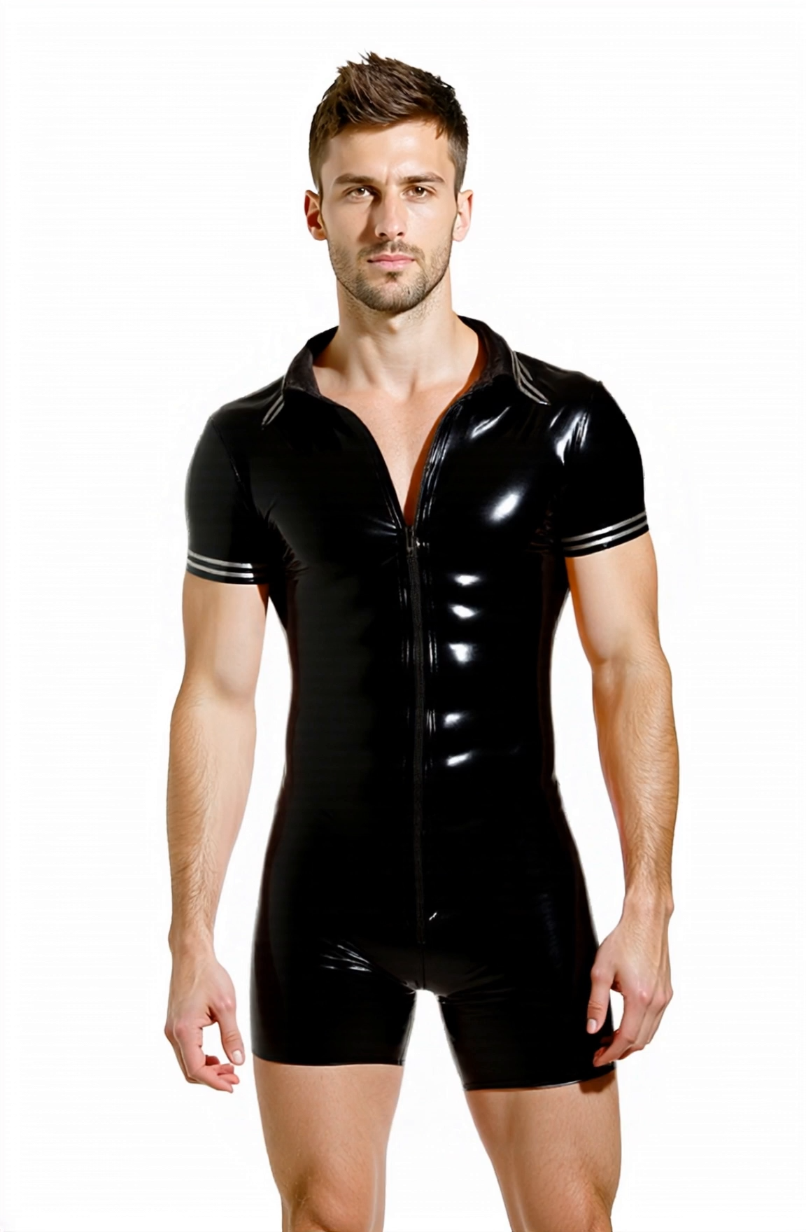 Mysteryglove Men's High-Shine PU Leather Polo Bodysuit – Black with White Striped Details Mysteryglove Men's High-Shine PU Leather Polo Bodysuit – Black with White Striped Details Mysteryglove Men's High-Shine PU Leather Polo Bodysuit – Black with White Striped Details